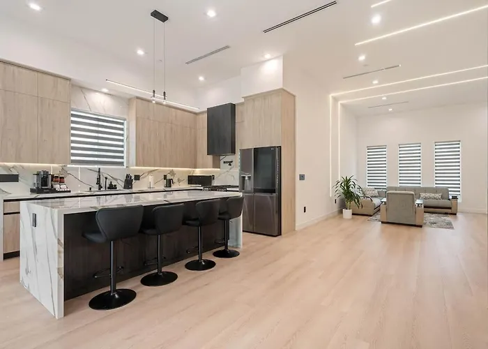 A fully-equipped kitchen is complete with a microwave oven, an electric kettle, and a refrigerator, featured in the Los Angeles property. This Los Angeles holiday home is 10 minutes' drive from Hollywood Burbank airport and 27 km from 7th St/Metro Center train station.
